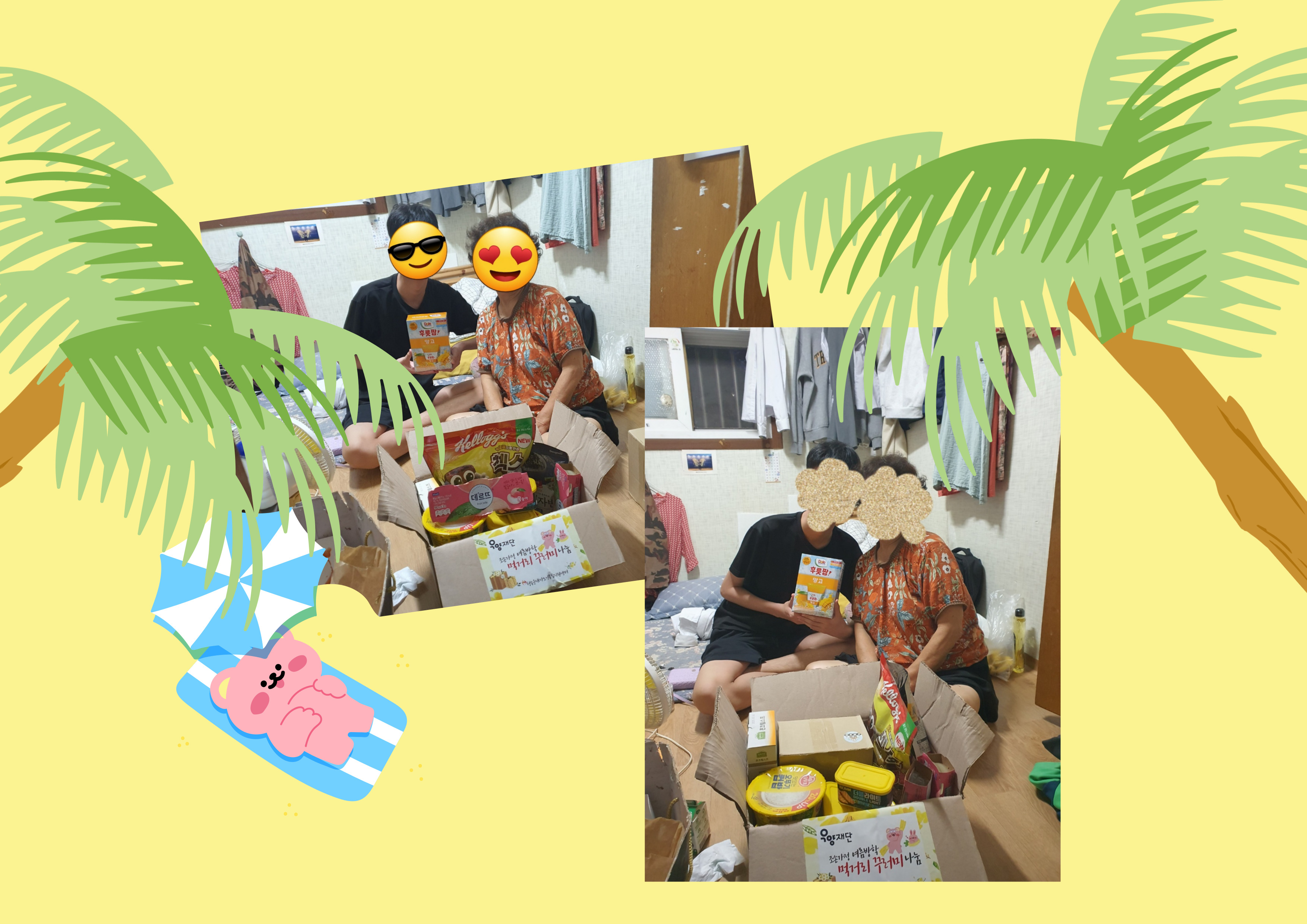 ¿ì¾çÀç´Ü 6-7¿ù °øÁö 'Á¶¼Õ°¡Á¤ ¿©¸§¹æÇÐ ¸Ô°Å¸® ²Ù·¯¹Ì ³ª´®' »ç¾÷¿¡ ¼±Á¤µÇ¾î ¼ÕÀÚ¿Í ÇÔ²² »ýȰÇϰí ÀÖ´Â ¿ì¸® ¾î¸£½Å´ìÀ¸·Î ¹°Ç° Àü´Þ ÁøÇà ÇÏ¿´½À´Ï´Ù.